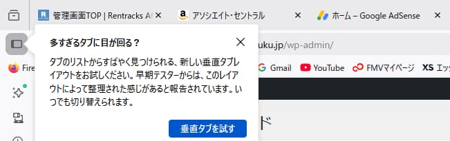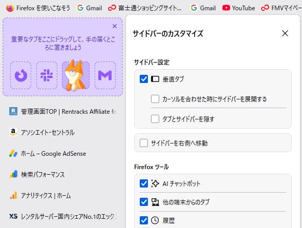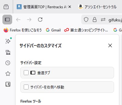 このFirefoxでは垂直タブという物が使えます。