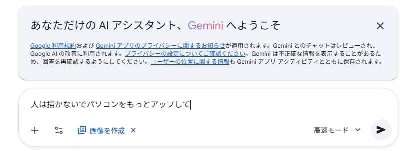 「人は描かないでパソコンをもっとアップして」と入力する。